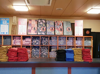 많은 분들이 오에도 온천에 가시는 이유는 유카타를 입을 수 있기 때문입니다. 들어가기 전에 유카타와 띠를 선택할 수 있습니다. 인기는 5번이 제일 많대요 유카타 하나, 띠 하나를 선택해 주세요!